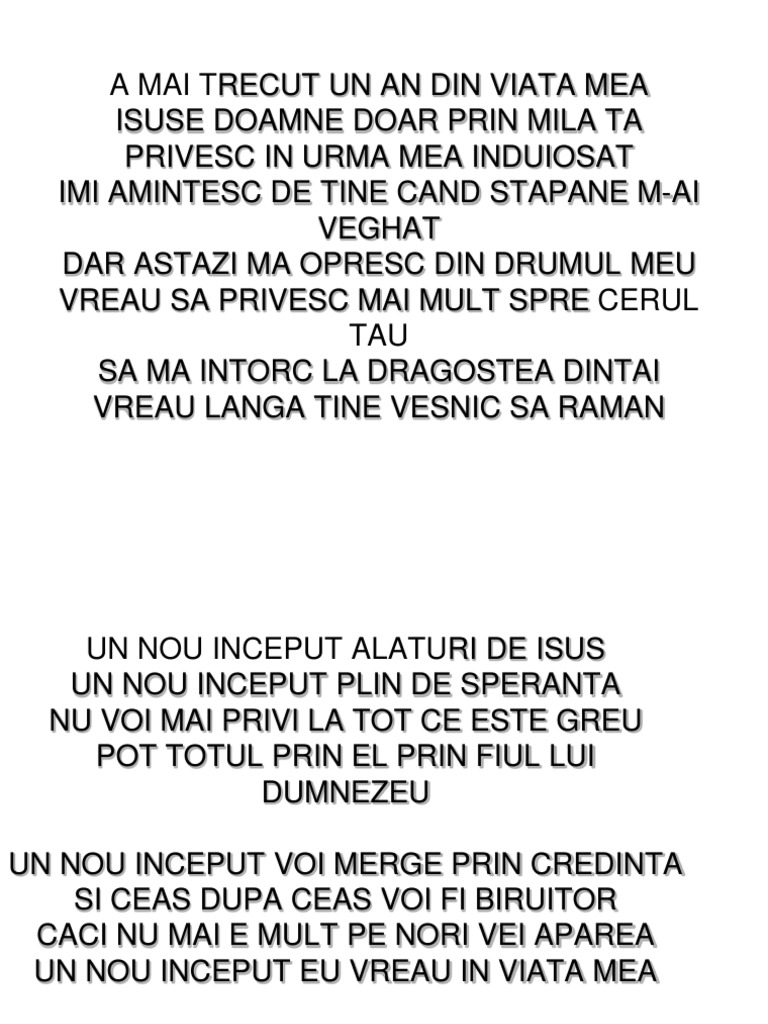 M ai luat de màna si am inaintat prin aceasta incercare grea. Privesc inapoi si constat cat de efemeri suntem a mai trecut un an din viata mea si atatia altii pe langa el in trecerea ireversibila a vremii. Exact acum un an mi am futut viata. Un pas făcut spre veşnicie spre domnul sfintei mângâieri.