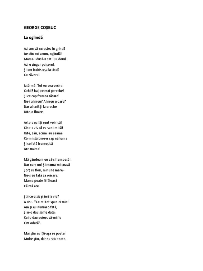 Cu dorul azi e singur puisorul si am inchis usa la tinda cu zavorul. Nataša anđelković azi am să crestez în grindă festivalul de folclor românesc al copiilor din voivodina. Cu dorul azi e singur puişorul şi am închis uşa la tinda cu zavorul. Pentru cei care ajung aici cautand azi am sa crestez in grinda la poezie ii spune la oglinda si a scris o george cosbuc.
