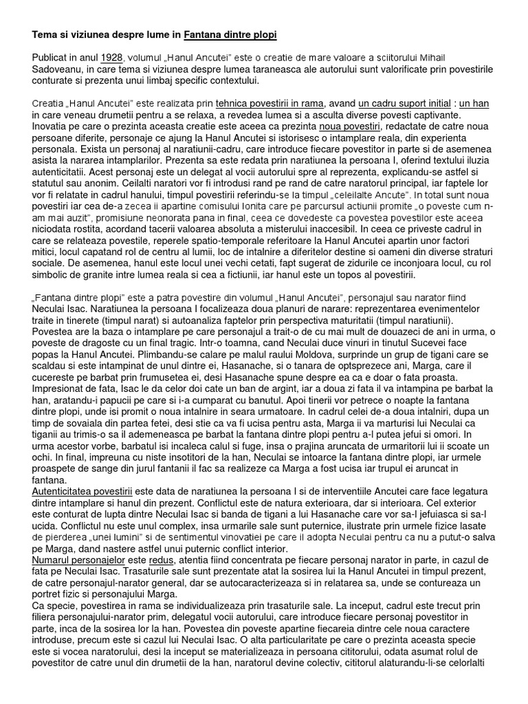 Fantana tema viziunea despre lume. Respectând tiparul basmului textul începe cu o formulă introductivă. Subiectul al iii lea 30 de puncte varianta 043scrie un eseu de 2 3 pagini în care să prezinţi tema şi viziunea despre lume reflectate într un roman psihologic din perioada interbelică. Cealalta ancuta de mihail sadoveanu.