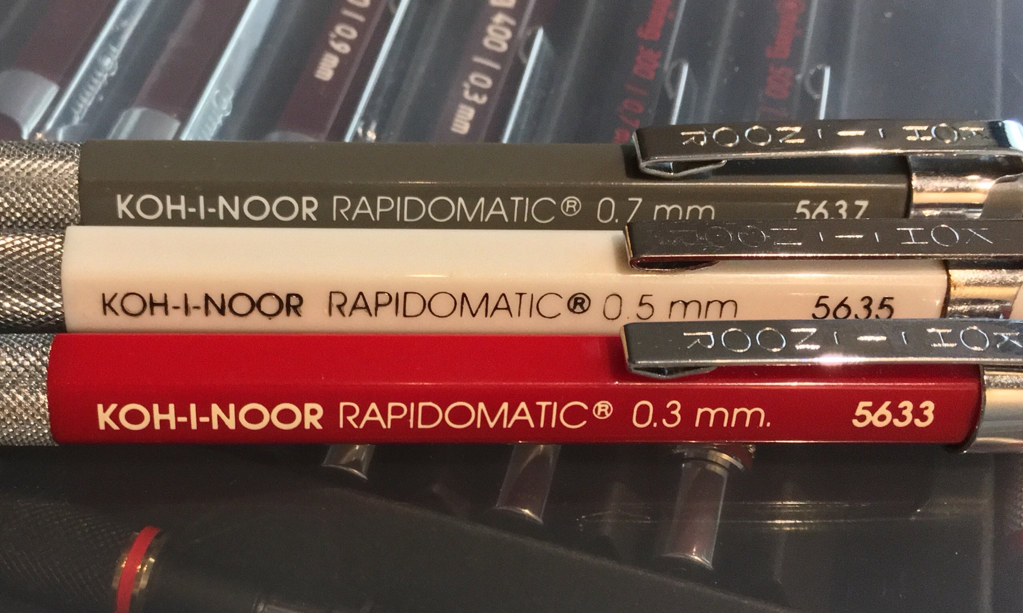 5633 the kohinoor rapidomaticpencil is the ultimate in mechanical pencils. We don t know when or if this item will be back in stock. Pocket clip eraser 3mm lead diameter. 0 3mm 5633 missing end cap 0 5mm 5635 both work fine.