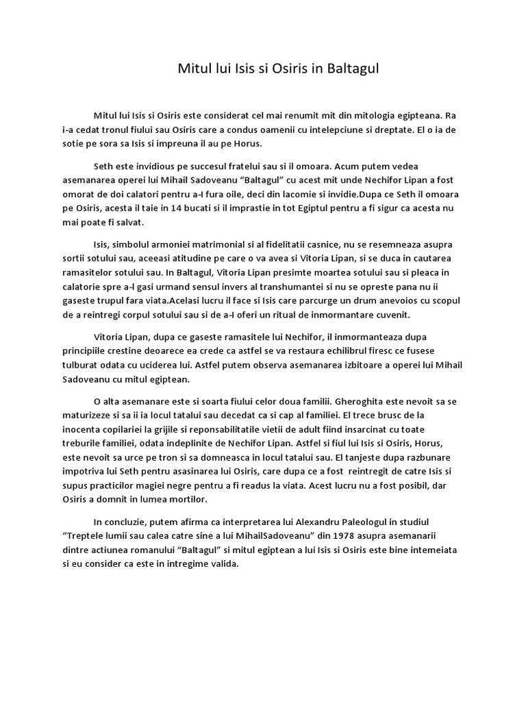 Triumful vieţii asupra morţii. Isis apare îl scoate pe osiris şi îl duce în egipt unde îl retrezeşte la viaţă. Mitul lui isis si osiris in baltagul. Despre isis si osiris mitul fundamental si misteriile din religia egipteana.