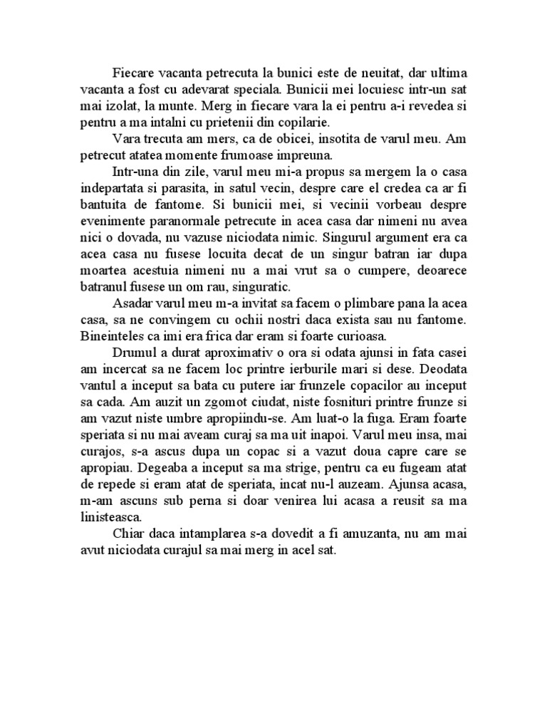 O intamplare din vacanta de vara. Era o zi frumoasă de vară din vacanţa mare. O întâmplare din vacanța de vara. O compunere despre o întâmplare din vacanţa mare pe care am petrecut o la bunici. M am trezit de dimineaţă pe la ora şapte.