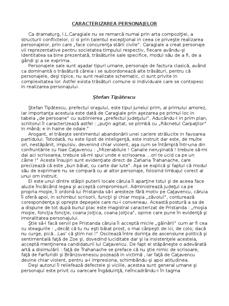 O scrisoare pierduta caracterizare zoe. Cetateanul turmentat completeaza diversitatea tipologilor realizate de i l. Care pot reprezenta o modalitate de caracterizare direct. Directorul racnetului carpatilor se dovedise un ambitios abil un orator cu priza asa incat transformarea lui din adversar in partizan este. Altă caracterizare pentru tipatescu și zoe trahanache mai găsiți și aici unde pe lângă cele două personaje găsiți și caracterizările celorlalte personaje din piesa de teatru o scrisoare pierdută de ion luca caragiale.