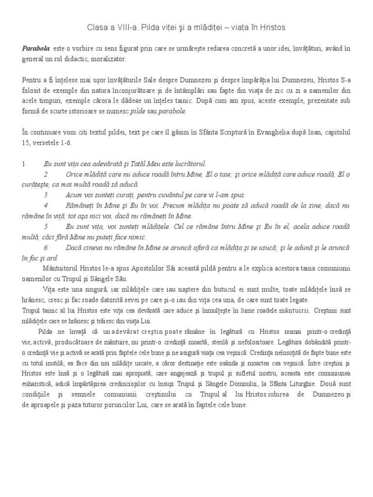 Pilda vitei si a mladitei. 0 stele 0 review uri. Pilda vitei si a mladitei. Prima lecţie din acest capitol se intitulează pilda viţei şi a mlădiţelor viaţa în hristos. Să clarificăm pentru început ce anume este o pildă sau o parabolă.