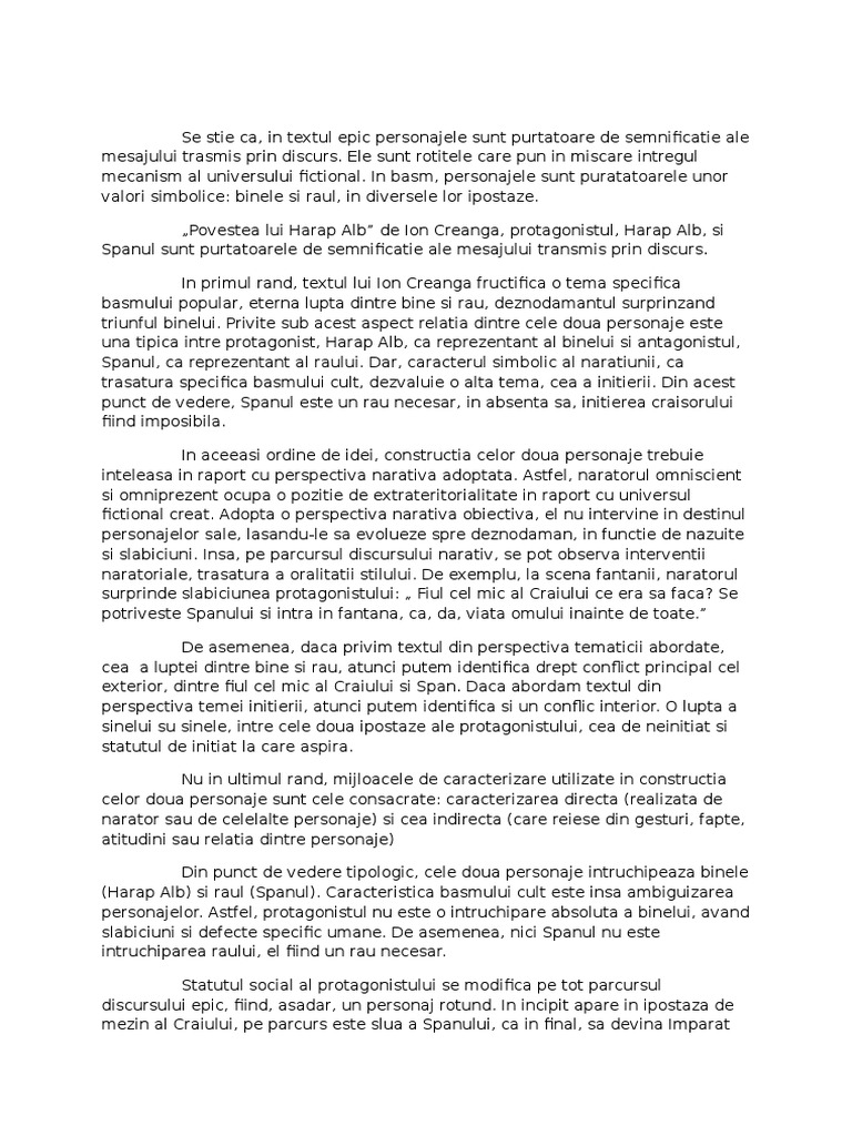 Caracterizarea personajului lui harap alb. Fiul cel mic al craiului personaj principal protagonist pozitiv rotund dinamic tipul naivului pe cale de iniţiere. In opera harap alb personaje sunt tipologizate astfel. These include ion popescu gopo s film de aş fi harap alb a postmodernist novel by stelian ţurlea and a comic book by sandu florea alongside one of gabriel liiceanu s theses in the.