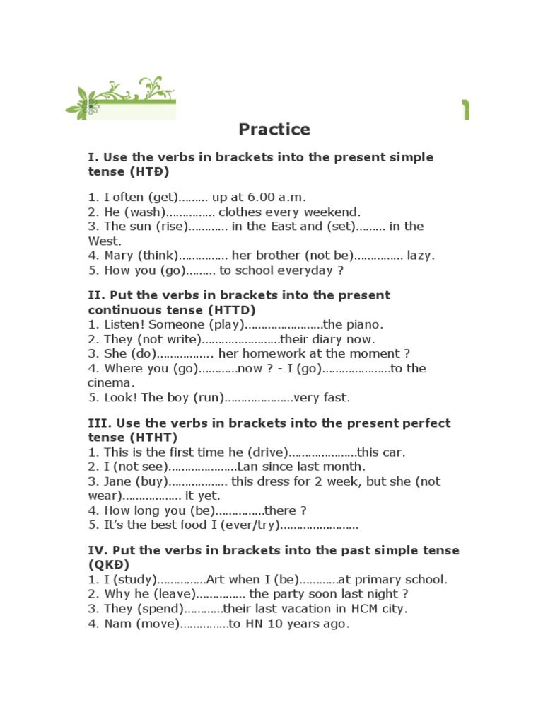 Put the verbs in brackets into their correct tense.