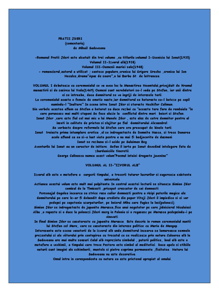 La baza romanului stau in primul rand cronicile precum si un vast material legat de figura lui stefan cel mare erou intrat in legenda de la ureche si neculce la vasile alecsandri eminescu delavrancea. Drept pedeapsă pentru isprăvile relatate în volumul anterior. Fratii jderi de mihail sadoveanu rezumat fraţii jderi ucenicia lui ionut fraţii jderi roman istoric epopeea domniei lui stefan cel mare in romanul fratii jderi de mihail sadoveanu. Fratii jderi fratii jderi povestire pe capitole fratii jderi rezumat fratii jderi trilogia fraţii jderi este alcătuită din romanele ucenicia lui ionuţ 1935 izvorul alb 1936 şi oamenii măriei sale fiind un roman epopeic simbolic pentru că ne găsim în faţa atât a destinului individual cât şi cel colectiv investite cu sensuri simbolice.
